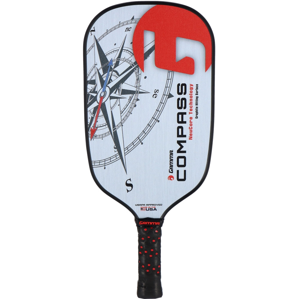 If you’re a player that values a balanced paddle with power, control, and an elongated head, then you’ll love the GAMMA Compass Pickleball Paddle. The elongated paddle head allows you to have that extra reach needed for your most daring returns. With NeuCore Technology, you’ll have the benefit of a 25% thicker large-celled core that provides the iconic soft and responsive touch of GAMMA’s best lineup. The textured graphite surface makes spinning the ball and putting power into your swing easier than ever before. To top it all off is a great red-white color design and the Signature GAMMA Honeycomb Cushion grip for additional comfort.