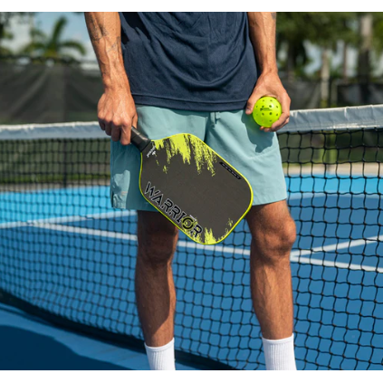 Weighing in slightly lighter than its predecessor at 8.25 oz., the Warrior v2 also features Liquid Carbon Fiber (LCF) in the edges that provide unparalleled durability and protection, ensuring that your paddle will last through countless games and hits. With its edgeless design, included with every paddle purchase, you will receive one piece of Paddle Armor, providing you with ultimate protection against daily scrapes and wear. The Warrior V2 uses the highest quality carbon fiber, Polypropylene honeycomb, and includes the Aramid honeycomb for power. With the addition of Diadem's Etched Carbon Fiber face, power meets control and the Warrior V2 becomes the most complete paddle on the market allowing you to take your game to the next level.