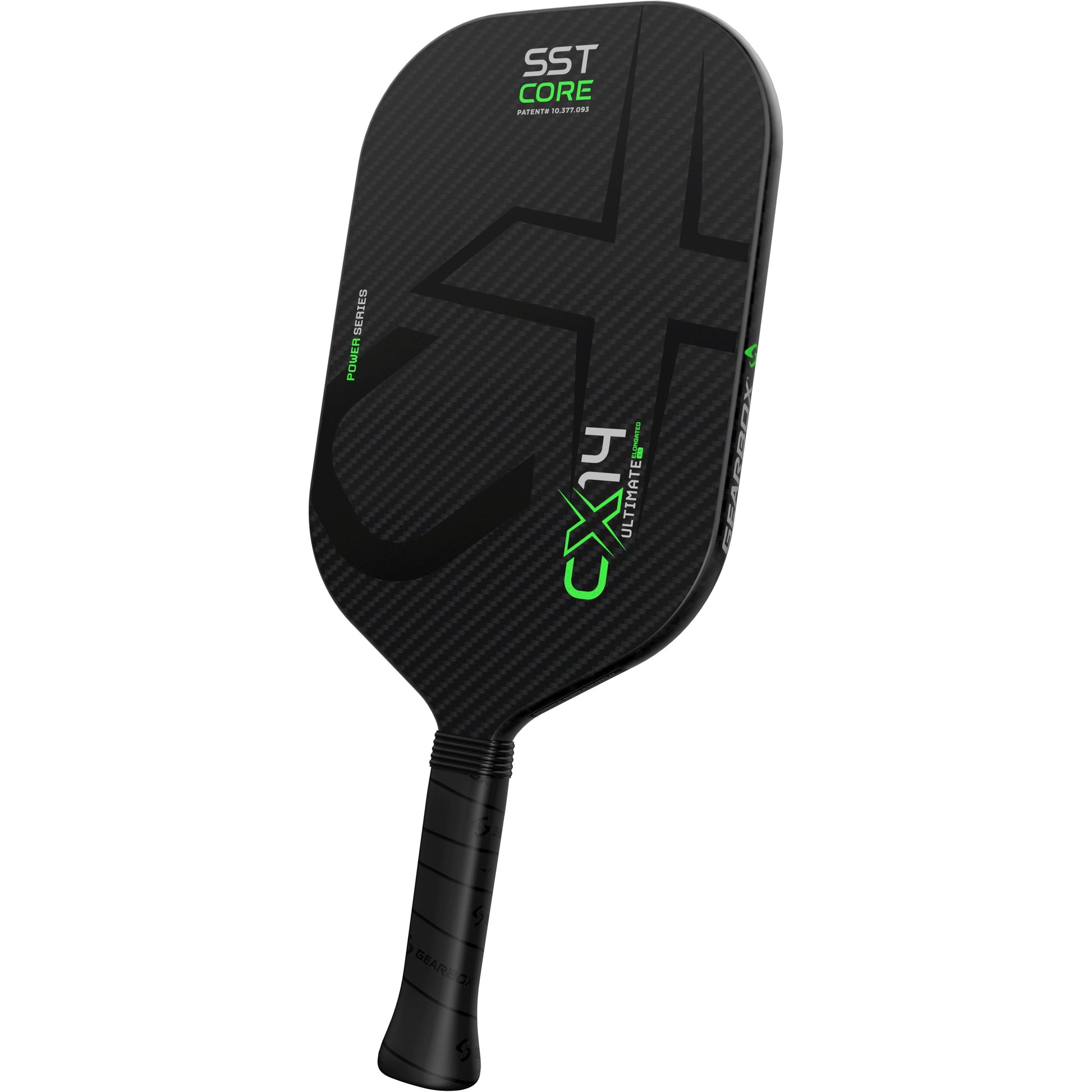 Introducing the all-new CX14 Ultimate Power Collection with new Power Band Technology, the most advanced paddle yet created by Gearbox. Inspired by the original CX14 but re-engineered with fearless creativity and ingenuity, this collection is designed to push the limits of paddle technology. Power Band Technology detaches and suspends the patented SSTcore rib structure from the perimeter of the paddle, creating a trampoline effect on the paddle face. The slight slope visible around the paddle's edge is your Power Band, giving you effortless Power with a solid, plush feel. With its improved sweet spot offering more consistency and improved touch, to its upgraded Edgeless Frame now with more reinforcement, stability, and power, the CX14 Ultimate Power collection is the pro-choice of Joey Farias and Frank Anthony Davis.